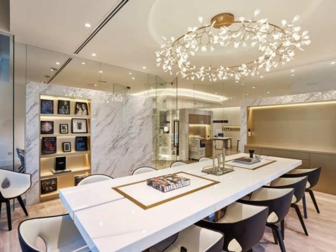 Leather-lined walls, brushed brass and glistening chandeliers are what enables employees to create beautiful content for this high-end fashion magazine company