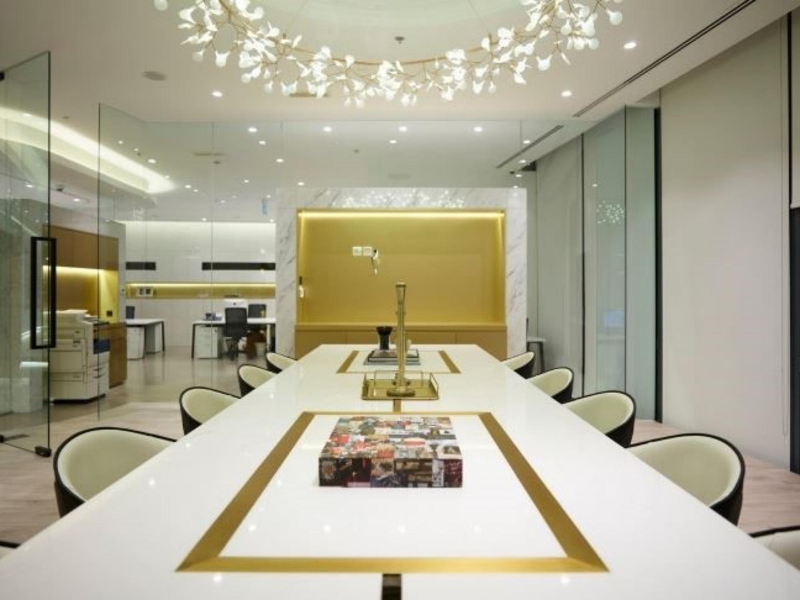 Award-winning firm Swiss Bureau Interior Design (SBID) were asked to create an office that can comfortably accommodate luxury brands such as Prada, Cartier and Louis Vuitton. The interior designers have used the Midas touch; if it’s not already gold, then it certainly looks as expensive as.