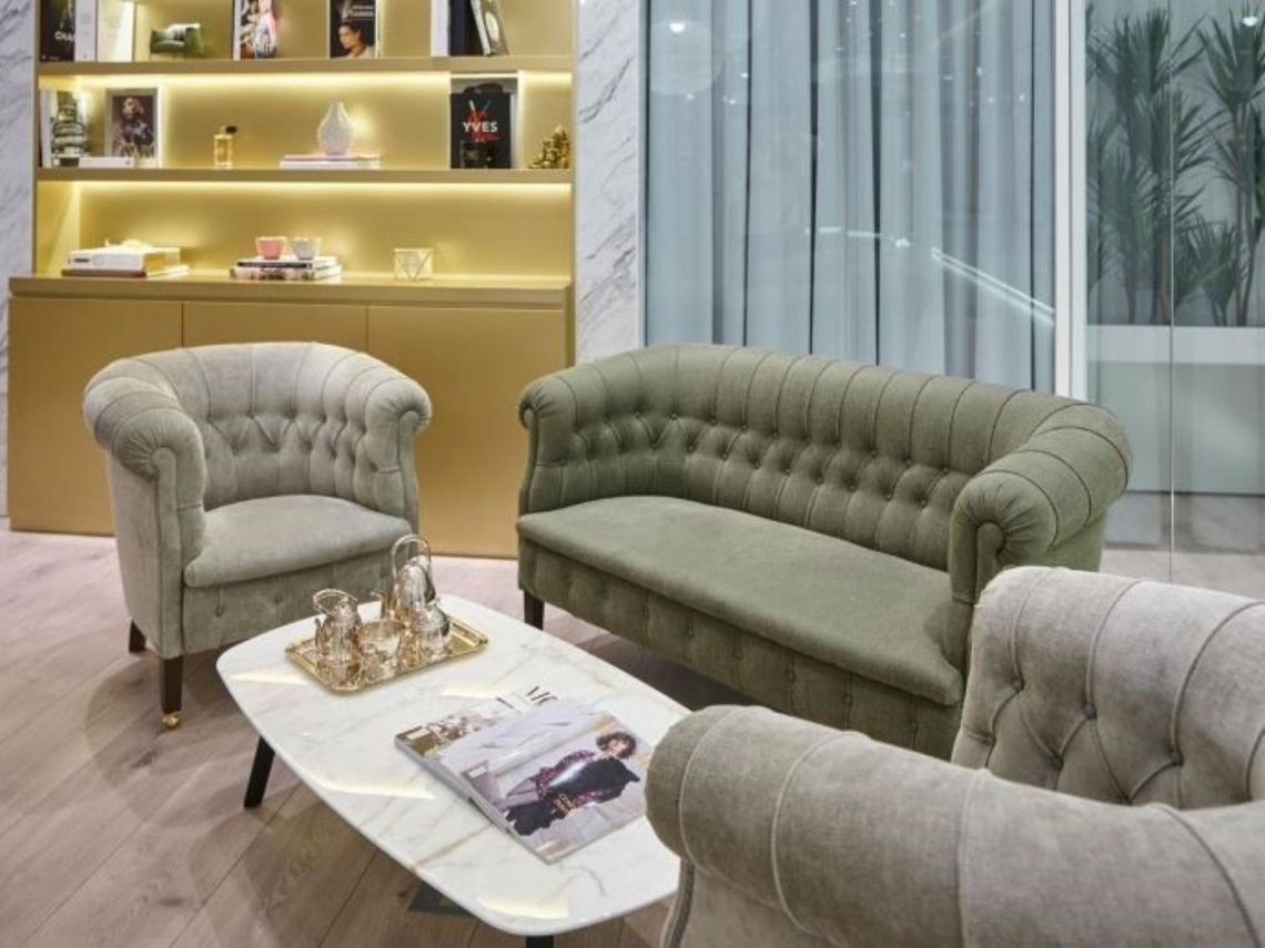Every surface is gleaming in a pristine sea of reflective glass. Glass must be regularly cleaned to maintain such a flawless façade, and such up-keep is synonymous with luxury fashion. As a supermodel, regular personal maintenance is expected as the norm; therefore, MOJEH’s office truly is the cover girl.