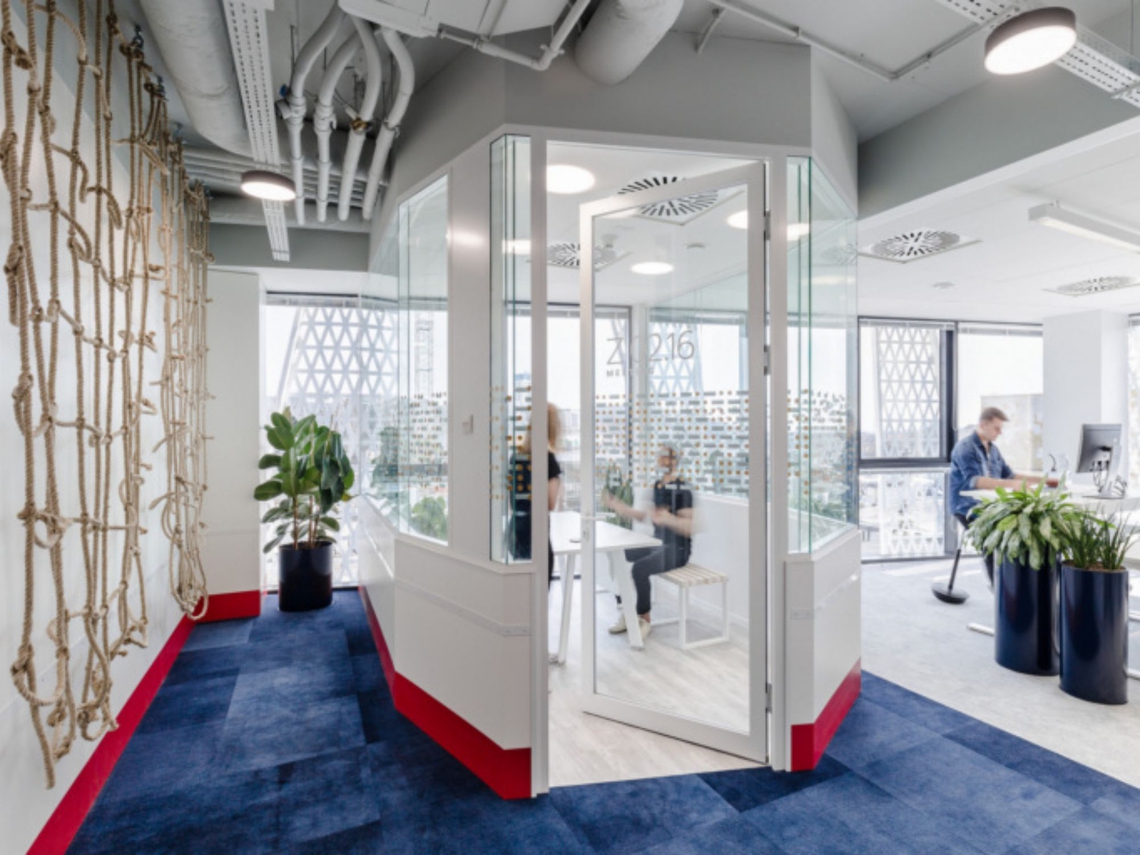 The design was inspired by the city of Gdynia. A port city of a unique seaside atmosphere referring also to the organisation’s Nordic roots. Particular floors are organised around themes referring to the main elements of the city.