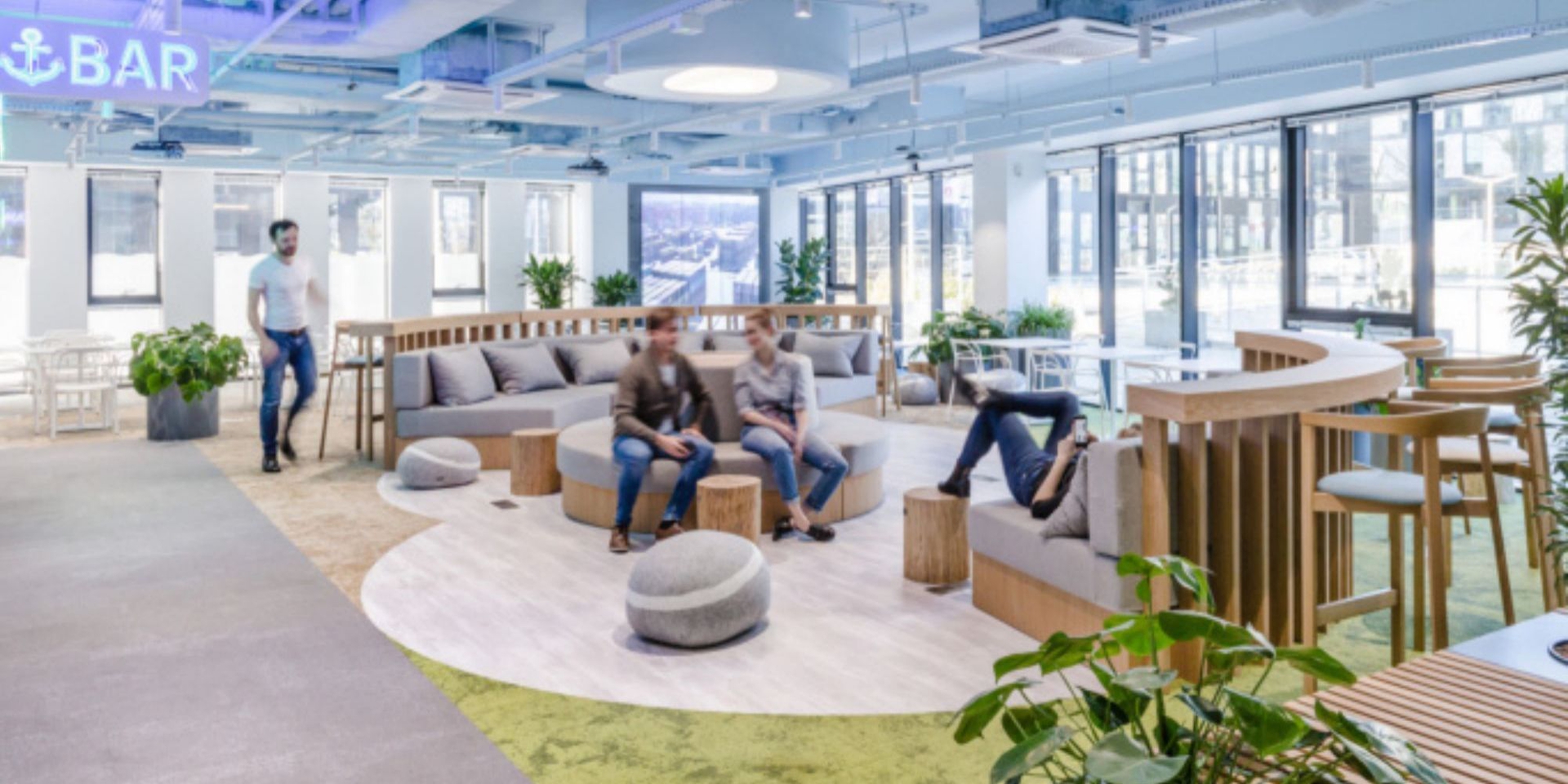 Management work on a floor which has been designed in the style of pre-war Gdynia modernism. Meanwhile, the multi-function ground floor references Kościuszko Square and its surroundings. This is the heart of the company and any employee can work, rest or hold a meeting here.