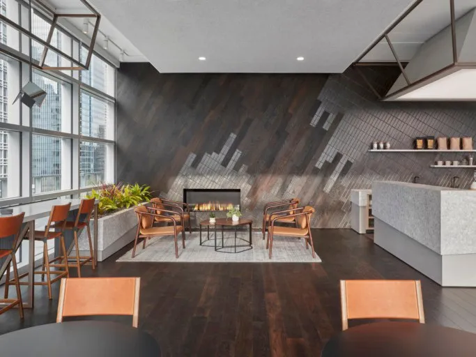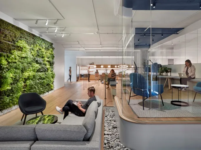 O+A chose a succession of finishes and palettes that suggest changing landscapes in order to replicate the distinct outdoor experience of the Pacific Crest Trail. For example, the second floor is inspired by baked earth colours and ubiquitous cacti to evoke the Baja desert, while Floor 5's library replicates the stillness of a mountain lake. This motif is sustained throughout the workspace's 10 floors, with inspiration taken from old growth forests, mountain streams, volcanoes and glaciers.