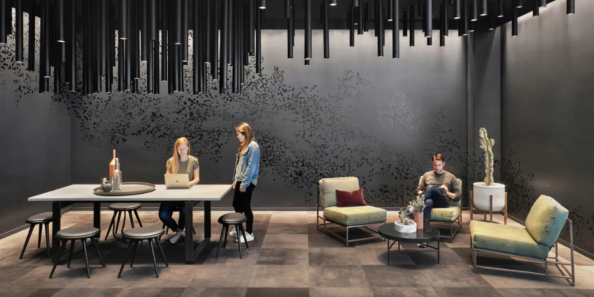 Central to the design concept was the idea that, like with every work project and every hike in the wilderness, there should be scenic surprises - a process of discovery. At Slack's headquarters, you turn a conrer and there is a stunning design feature such as a wall installation replicating the topography of Lake Tahoe, or a starry night room. At every instance the beauty is a reward for effort, reinforcing the idea that those who venture away from their desk makes the most of their workday.