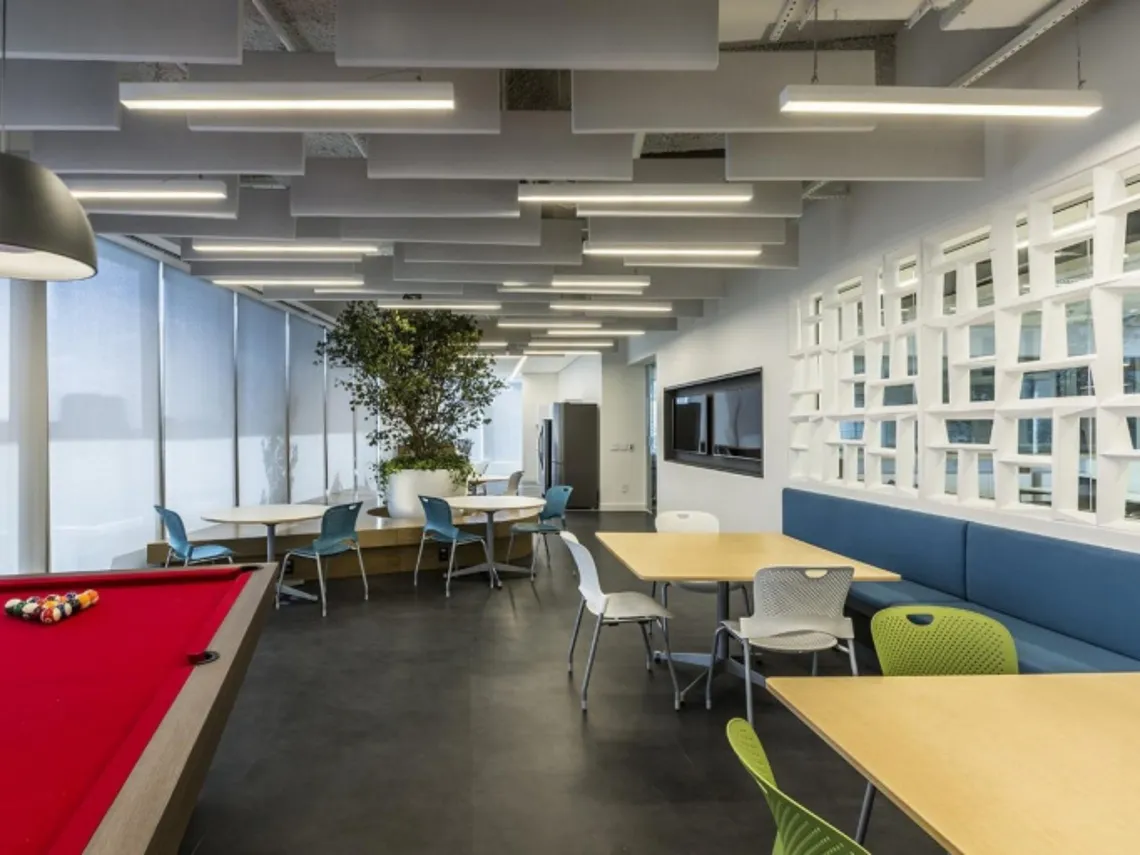 The whole Brazilian workspace demonstrates that you can have dynamic architectural feature walls that enable employee fluidity, yet still provide a convenient, practical and adaptable workspace.