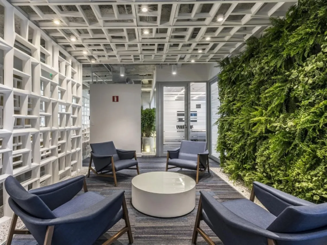 Noticeably Trend Micro have installed an ecological fern wall. There is a mountain of evidence affirming that biophilic design improves staff well-being. Biophilia, stemming from the Greek meaning “love of life”, is more than just aesthetics: mimicking nature in the workspace promotes a sense of calm that encourages people to be more productive.