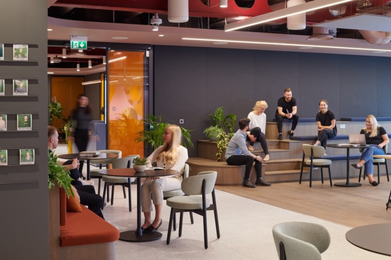 Working closely with Unity, M Moser designed a bespoke, four-story workspace that creates compelling experiences for work and socialization throughout. Front of house features a tech suite with a virtual reality lounge, games room, training area, large boardroom, and video conferencing room. Communal social and refreshment areas on each floor function as informal breakout spaces to encourage mingling.