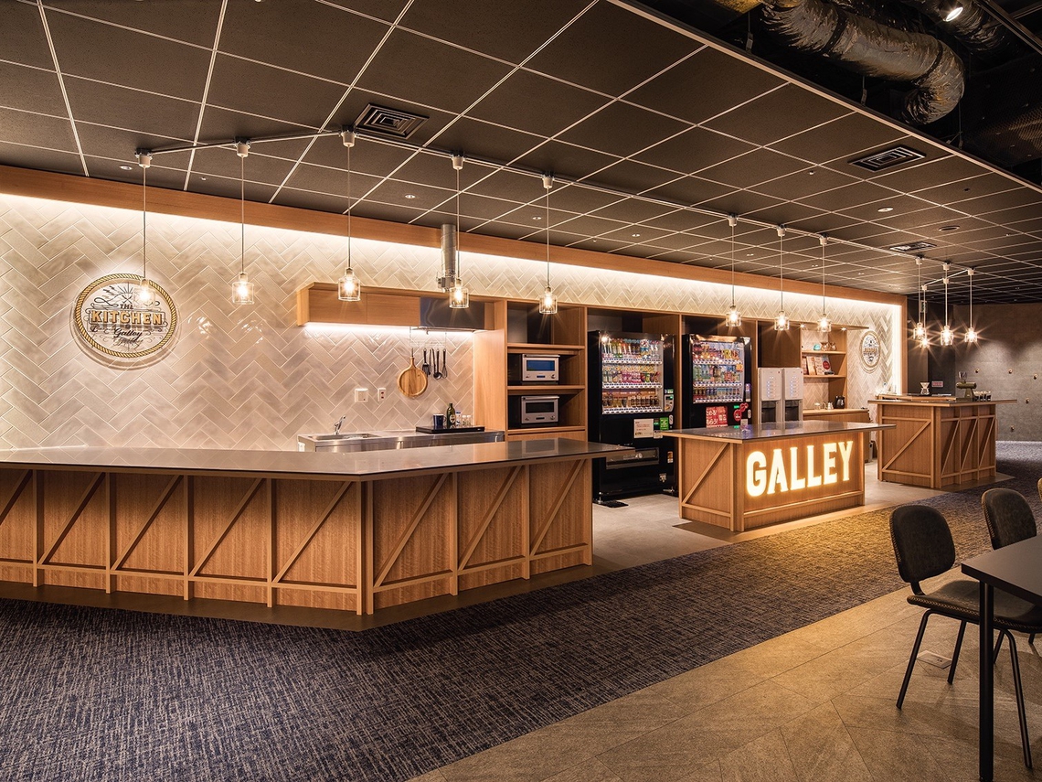 The workspace both embodies the group's corporate philosophy of "360-degree amazing" while also conveying a story of "voyage" - travel over the sea.