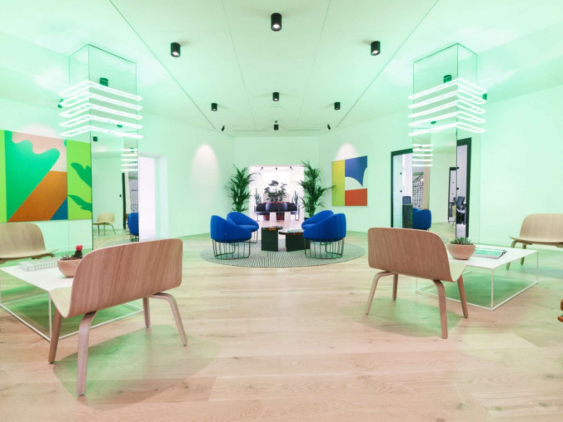 The decoration designed by WeWork is a tribute to Haute-Couture and particularly to that of Yves Saint Laurent. The terracotta clay of the gardens, the painted blue concrete with bursts of yellow, the greenery of the palms and cacti plants; All these colours and materials reference those that the couturier loved in the Jardins Majorelles in Marrakesh, Morocco and have been incorporated into the interiors of WeWork Champs-Élysées.