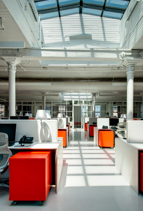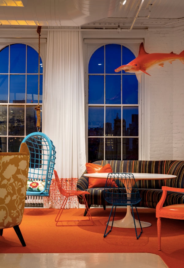 BHDM Design was hired to create the perfect office for Axiom, and we think you’ll agree that they definitely achieved this. They decided to retain and utilise the original architectural details of the loft and add a creative flair to the space by installing an 8-foot-long fibreglass shark over Axiom's work area in the companies iconic shade of orange.