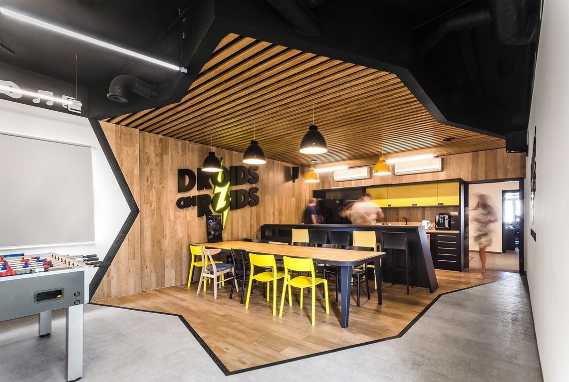 Combining the functionality of mobile applications with a workplace environment that represents Droids on Roids’ visual identity system is the main theme of this space.