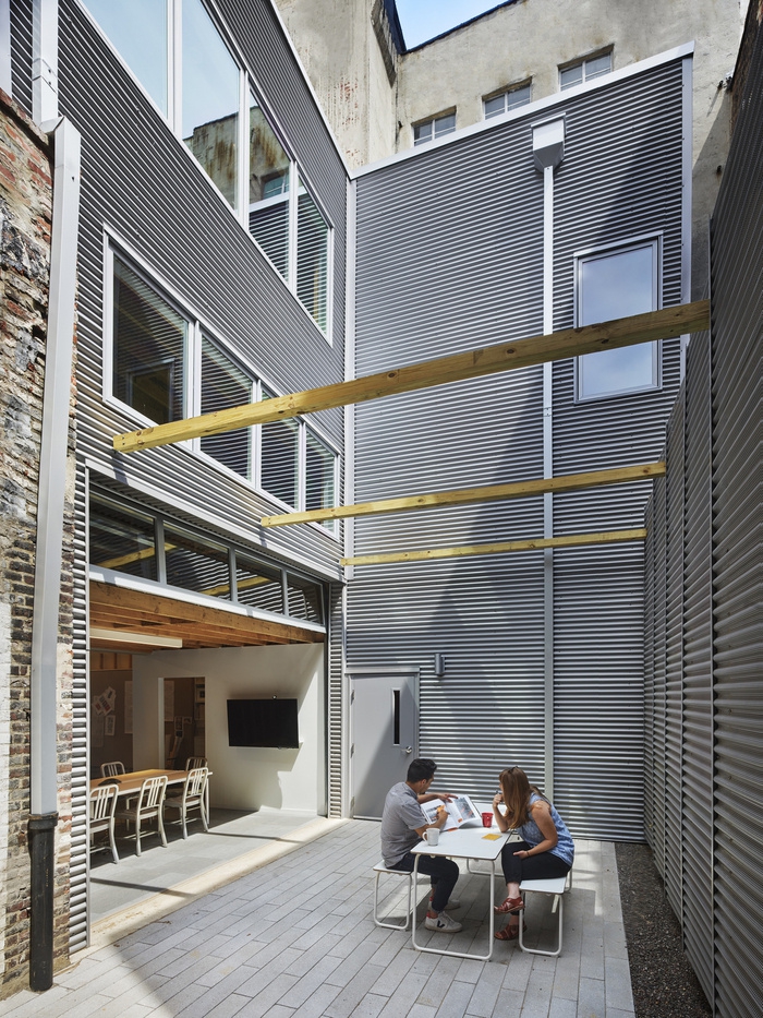 The new design for their studio was realised through a series of restrained architectural interventions and vertical expansion of the existing one-story 19th-century shell. They wanted a changeable workspace supported by a grid of modern infrastructure.