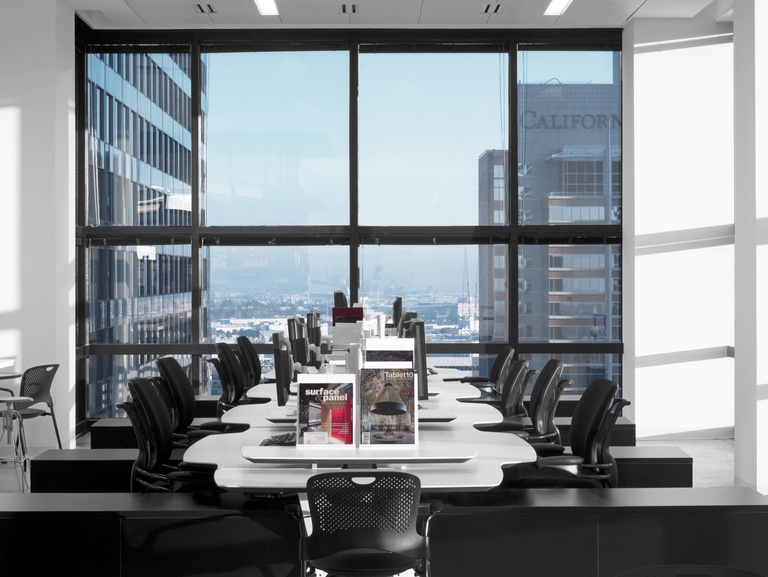 SECONDLY, windows. A view of some trees through the window is excellent for one’s wellbeing. Even a view of the sky can be a great help – not least because it really helps with creativity and “blue sky thinking”. In order to make the most of the windows in a space, keep everything as open-plan as possible and use modular furniture like our Storagewall and HotLocker systems that can fit snugly around a window without blocking any of the sunlight.