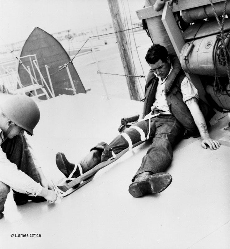 In Los Angeles, working in the spare room of their apartment, they put their techniques for moulding plywood to use making lightweight leg splints for U.S. Navy men serving in World War II. They would eventually go on to produce 150,000 of these, many of which are now kept in the collections of major museums. After the war, they continued to experiment with plywood, moulding it into abstract sculptures, tables, chairs, even children’s toys: the Eames Elephant, made from two tightly curved sheets of ply, was so technically challenging that it never went into mass production; although an early prototype was given to Charles’s 14-year-old daughter Lucia.