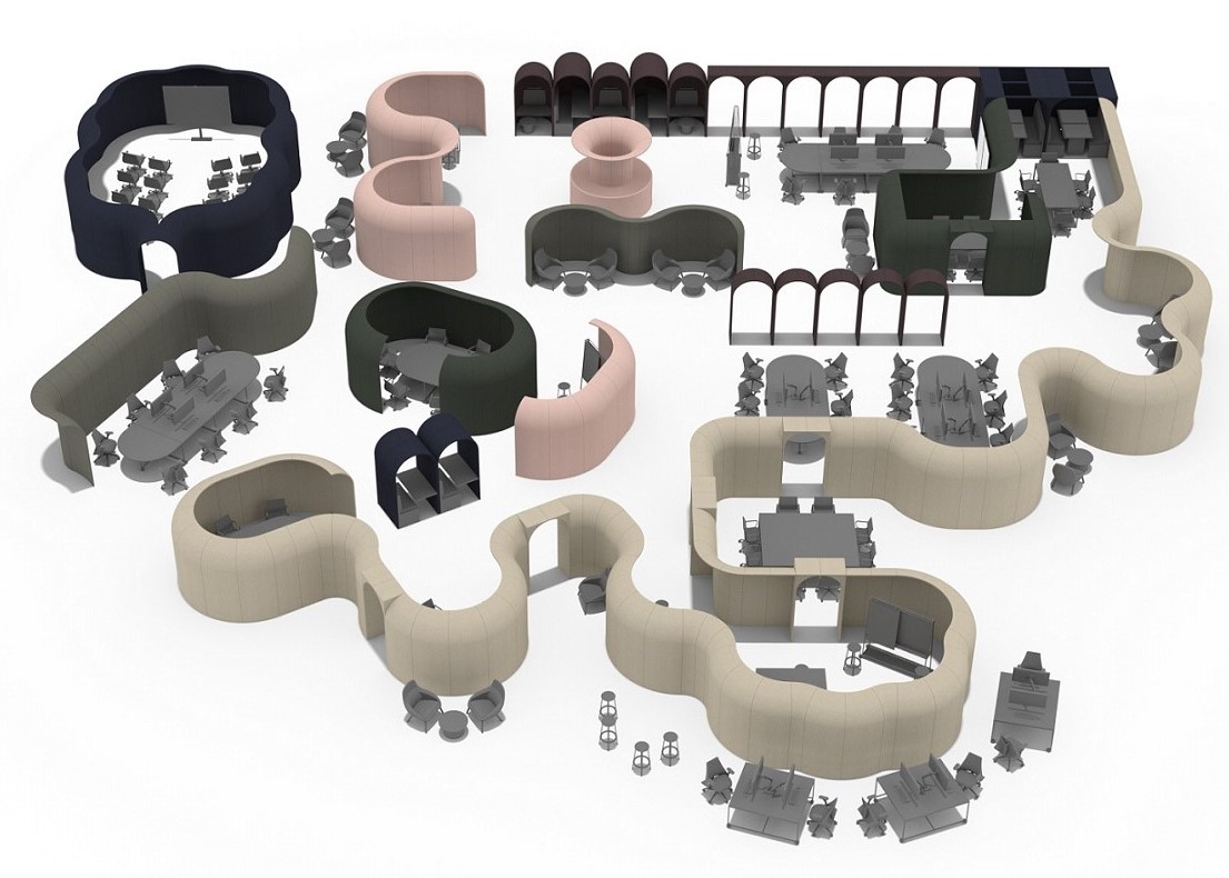 Soft architecture changes shape when needed, blurring the lines between interior and exterior, solid structure and flexible design. Soft architecture creates a curious relationship between organic forms and manufactured materials, bringing nature, creativity and an element of free-will into the office.