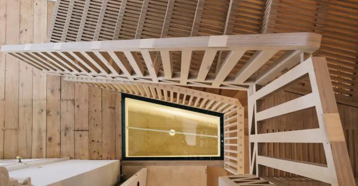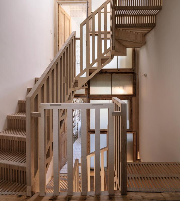 For this year’s Clerkenwell Design Week – which we also participated in – London designer Giles Miller made his Shinola Pavilion out of 8,000 jagged shards of plywood, which were arranged by hand into an undulating black cloud. Also in London, as part of the renovation of a seven-bedroom house, Tsuruta Architects slotted 2,000 rectangular slats of plywood together into a beautiful puzzle of a staircase that allows the light to shine through and looks as though it has been made out of Jenga blocks.