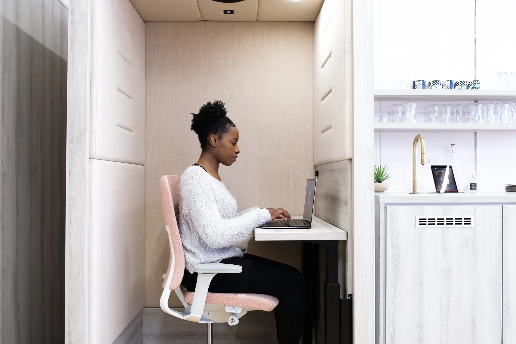 Portals is a flexible family of individual protected working spaces connected to the buzz, but with sufficient privacy and space to complete productive work.