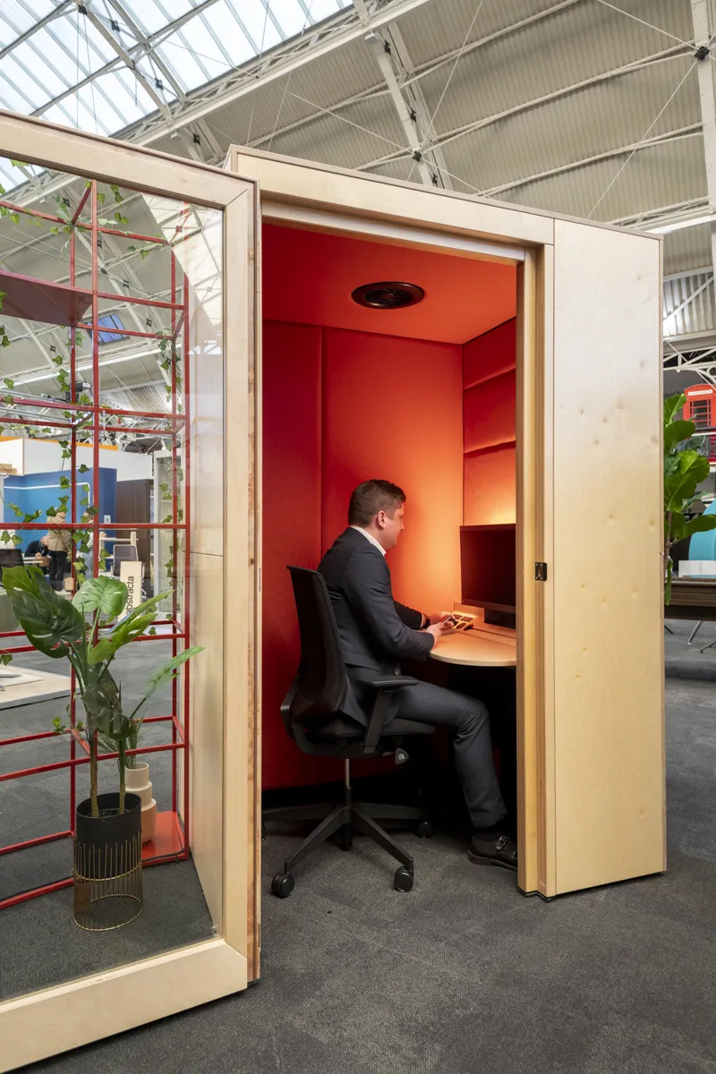 Only hearing half of a conversation is proven to be far more distracting than a dialogue between two people. This is because our brains constantly try to predict the inaudible other half of the conversation, hindering our ability to focus. It’s not uncommon to see a whole meeting room in use for a video conversation, whilst this removes distractions from the open space, the misuse of a large meeting room reduces the spatial capacity for face-to-face collaboration in the workspace. A sound-proof pod is a perfect, space-efficient solution to this growing trend. However, most pods have primarily been designed for quiet focus work. A pod designed for communication is quite different. Not only does the acoustic quality of the pod need to be optimized, but so do the finishes of the interior, support the visual representation of all people on camera, regardless of skin tone and clothing choice.