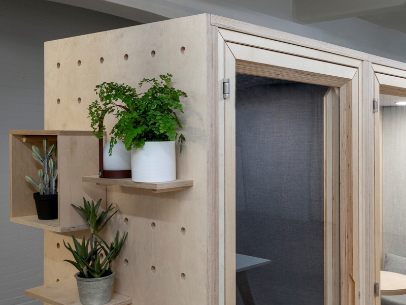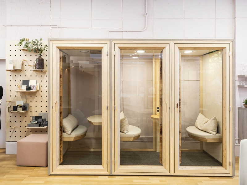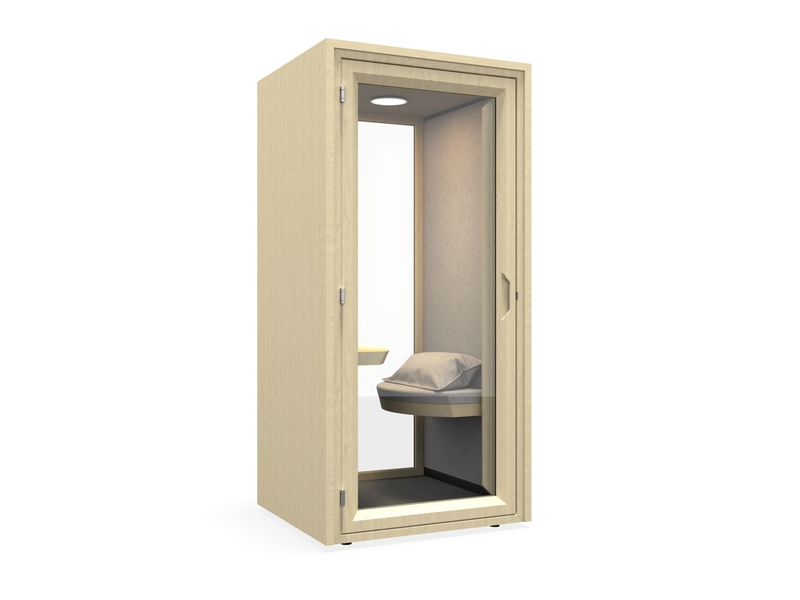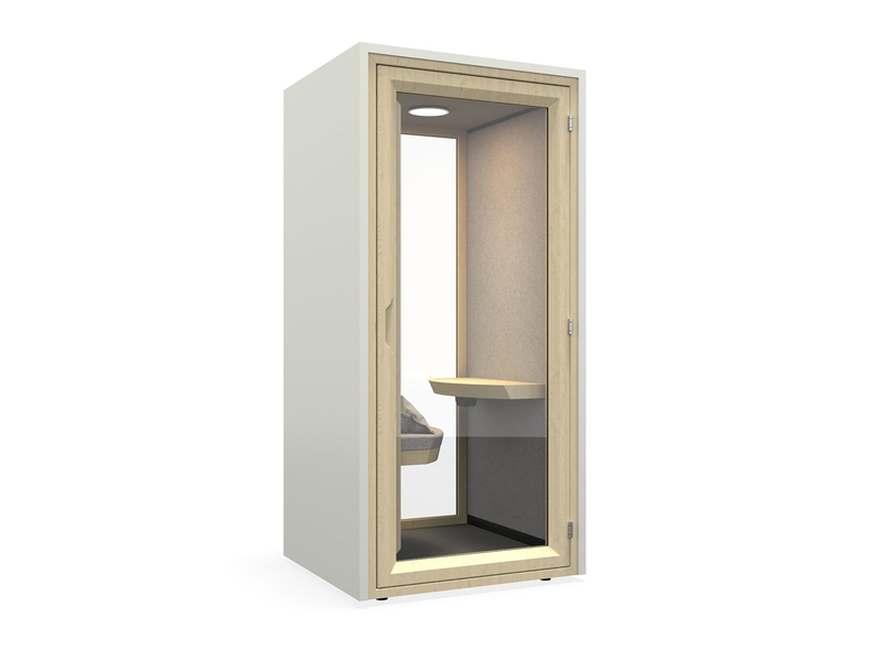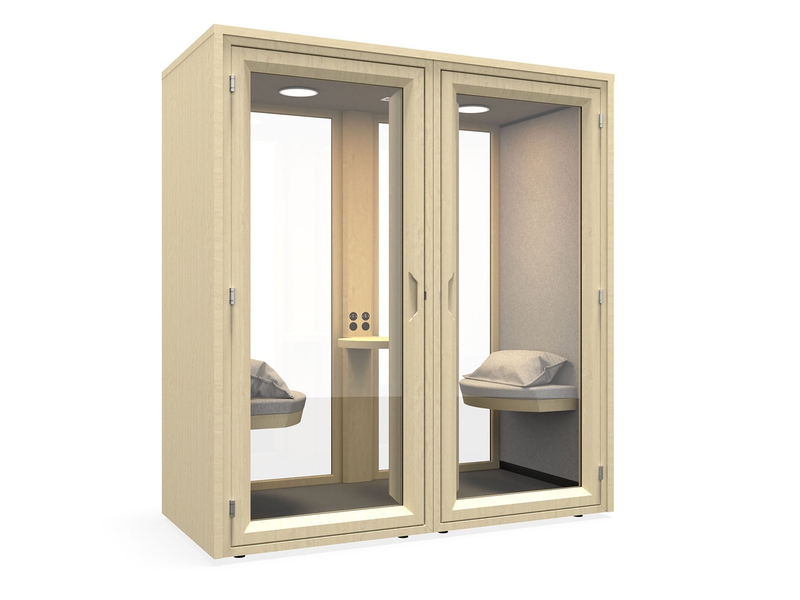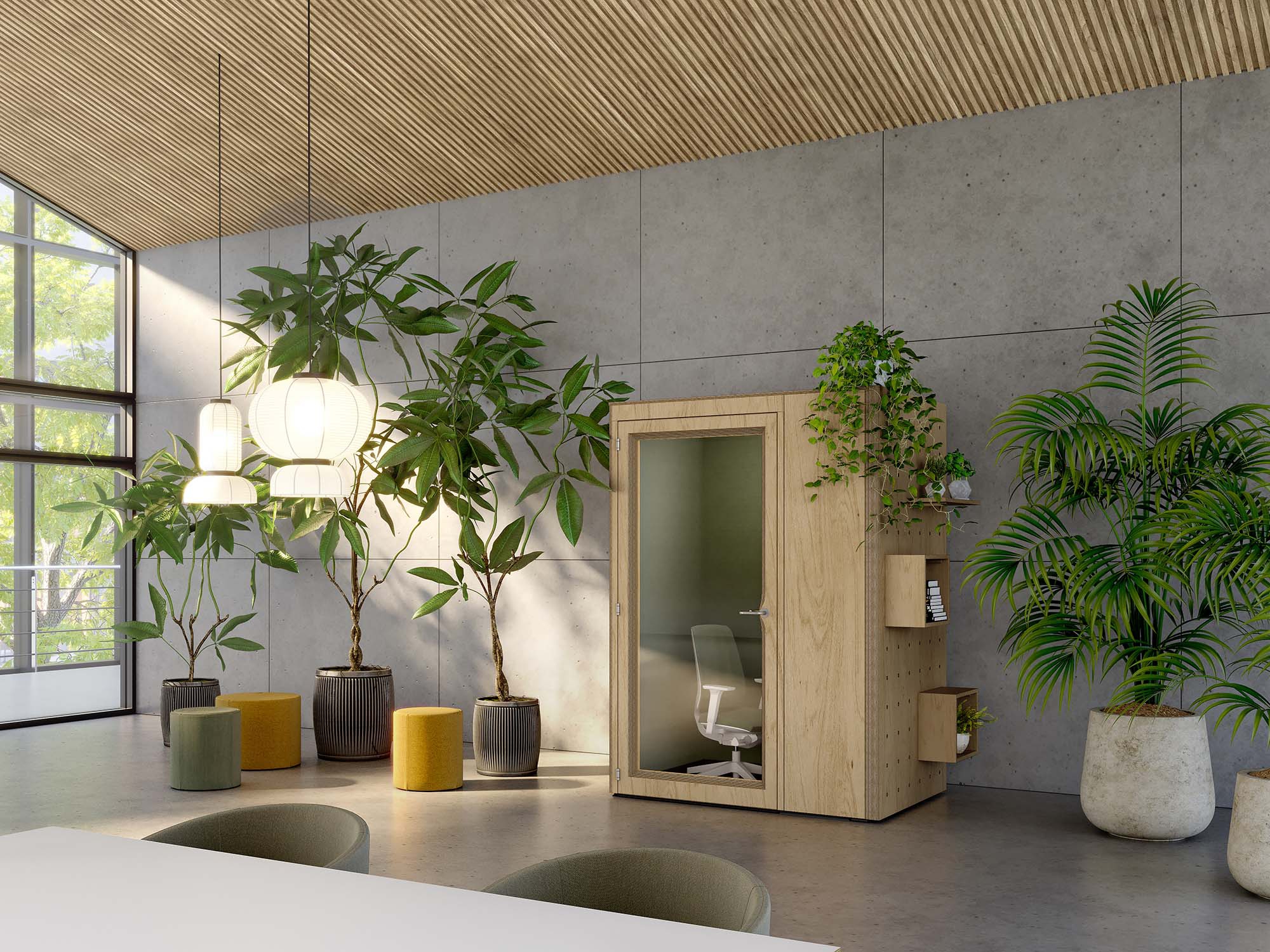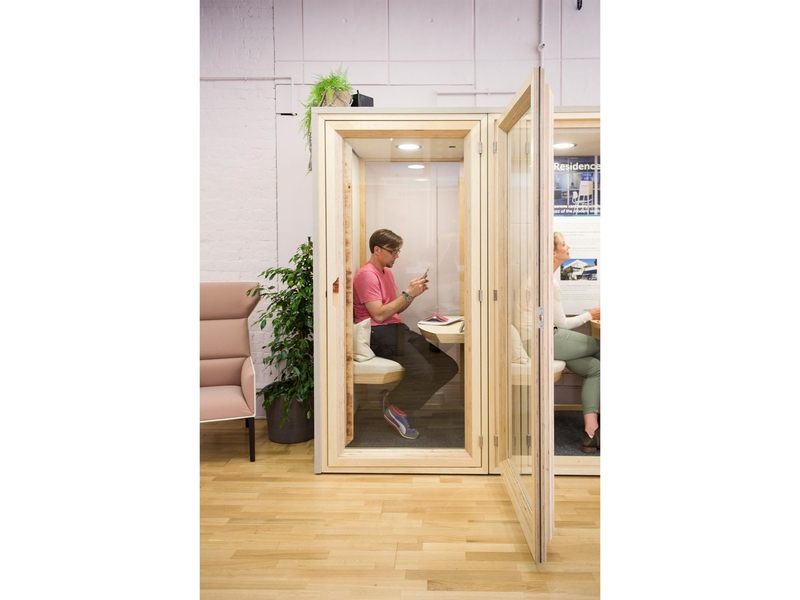 Dedicated quiet spaces are a necessity within the high-tech buzz of the modern working environment. Sometimes you just need to be alone. Whether you’re in need of a solitary space for private conversation or high focus working, the modern workspace provides little facility for this, with greater emphasis on open-plan collaborative and social zones, rather than individual spaces for quiet, uninterrupted working. Drawing on the rich design heritage of California, the Residences range creates iconic enclosures within the workplace, providing a serene sanctuary. Inspired by the beautiful ‘residences’, modern, innovative houses built by leading architects throughout the 20th century, these space-efficient pods provide private space using a minimum floor area. The range comes with glazed panels, allowing light to continue to shine through the workspace. The birch plywood finish provides a raw, natural aesthetic contributing towards the need for a sanctuary, inviting people to a serene space through biophilic design. Available as an individual pod, configured for either standing or seated working positions, or as a private meeting space for two people. The Residences range boasts extremely high acoustic quality, has a constant flow of fresh air with built in air vents and a highly adaptable design with a huge range of finishes options.