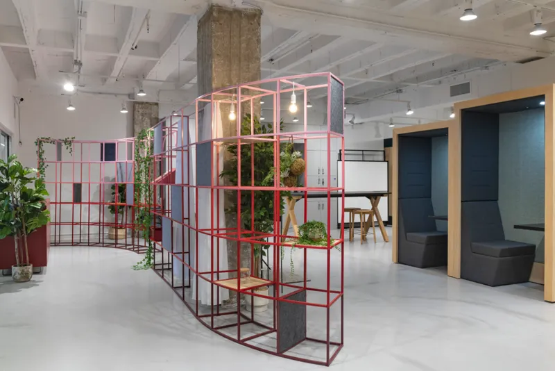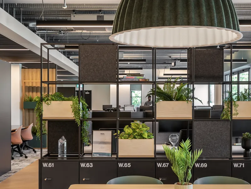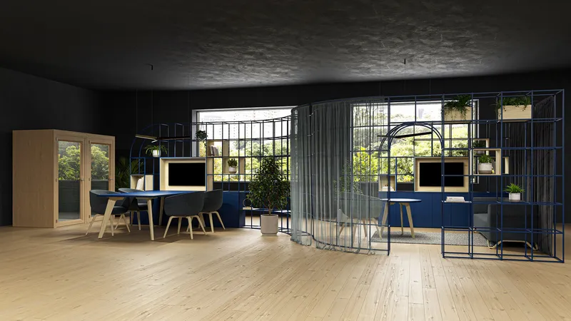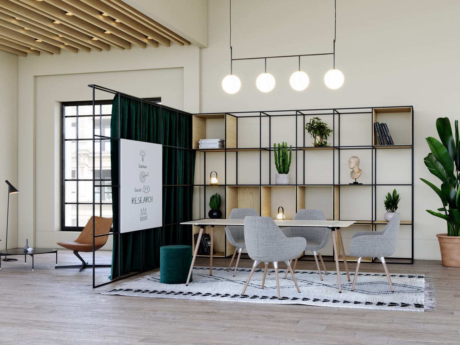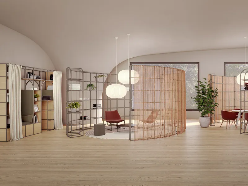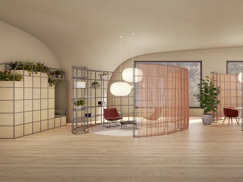 The workplace of today is not simply a space for employees to get work done, but needs to deliver an awesome experience through design. This new landscape demands a softer, less corporate, more flexible look and feel. Couple with this is the need for agility; organizations need flexible spaces that can be used in multiple ways. Palisades II is a space-defining solution, available in both linear and curved variations, it's an elegant expression of architecture within architecture, allowing for the simple, attractive division of space without building walls. Palisades II gives designers the choice to create a multiplicity of space types, using both the positive and negative spaces formed by these divisions to curate the perfect meeting space, touchdown area or central courtyard. A whole host of accessories provide the tools to curate a configuration that is totally unique whilst portraying your brand story. Archways, curtains and biophilia add a soft touch and acoustic protection, whilst TV Alcoves, shelving and storage cater to the essentials. Taking inspiration from the great mid-century modernist Californian designer Muriel Coleman, Palisades II brings Coleman's light, harmonious aesthetic into the ever-evolving workspace.