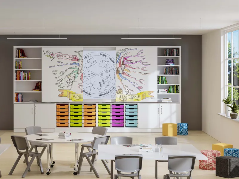 In the evolving landscape of education, the design of learning environments plays a crucial role in fostering student success. As educators and administrators seek to create spaces that support various learning styles and activities, the importance of designing the right spaces cannot be overstated. Traditionally, education spaces are very material heavy and without a proper storage solution, this can easily become a distraction to the students from their learning. The education designers of today need an aesthetic and space-efficient way of removing these distractions. Edustor is a highly functional, customizable solution which also allows for easy tech integration. It’s an organized storage system that increases student engagement by providing a distraction-free learning experience. With it’s space efficiencies alone, Edustor can increase classroom capacity. Edustor is a highly modular and adaptable system that can be easily reconfigured or relocated according to classroom use and varying teaching styles. Combined with other Storagewall products, personal storage, Recycle & Printer points or Snugglestors can be incorporated into the overall design, making the system adaptable to both student and teacher use.