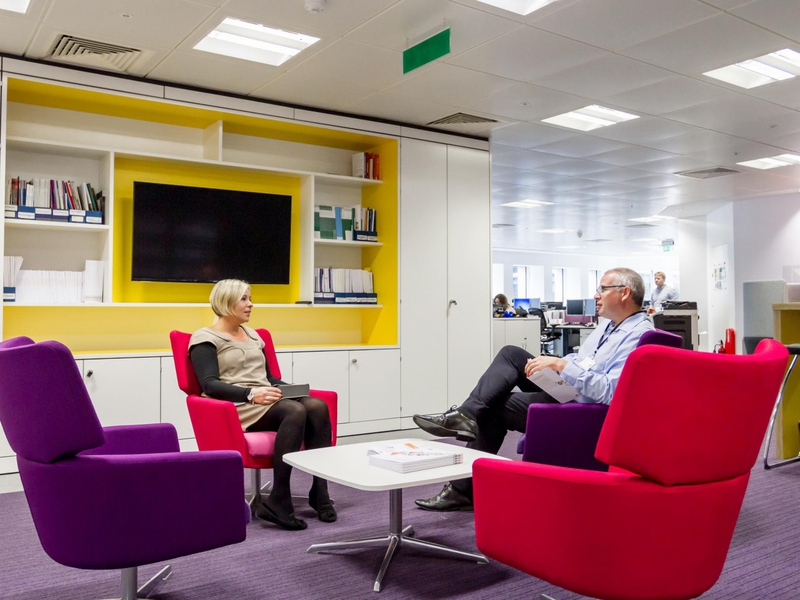 A dynamic and creative space for teamwork and collaboration in business management consultants Active International's new office.