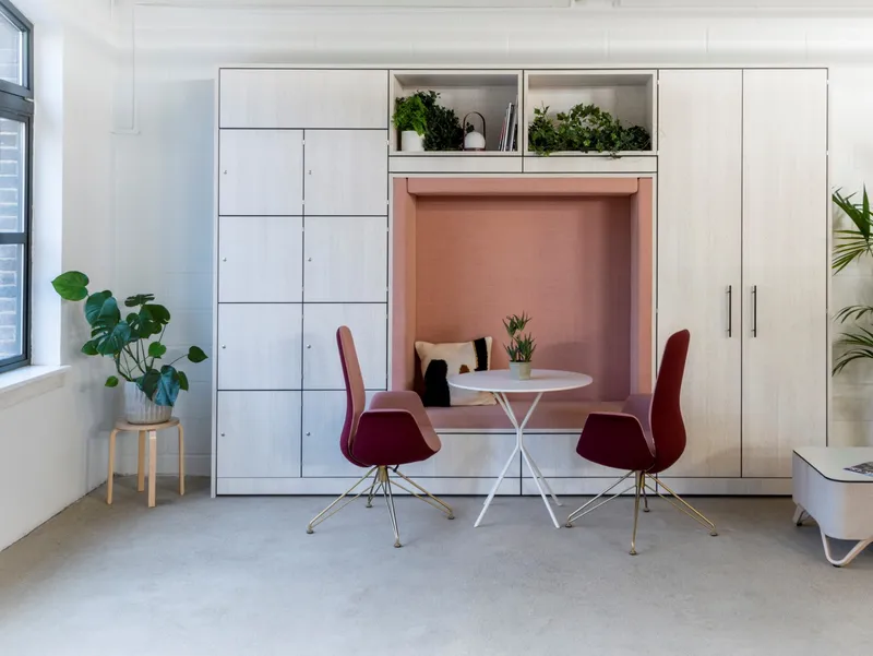 A designer upholstered alcove