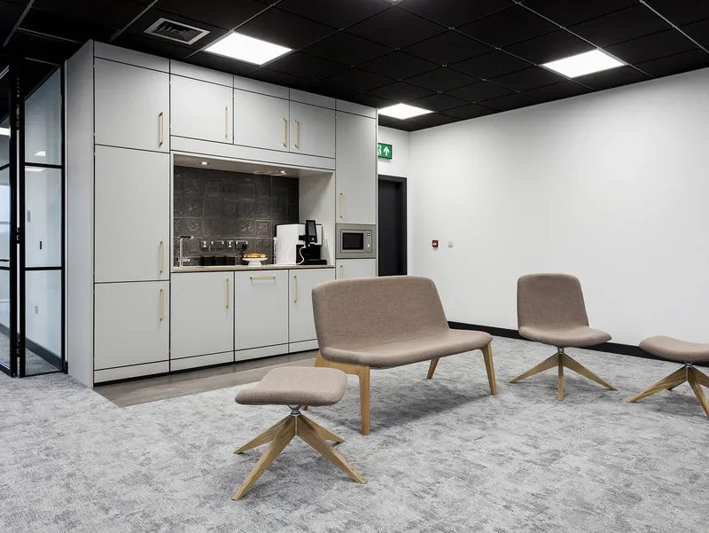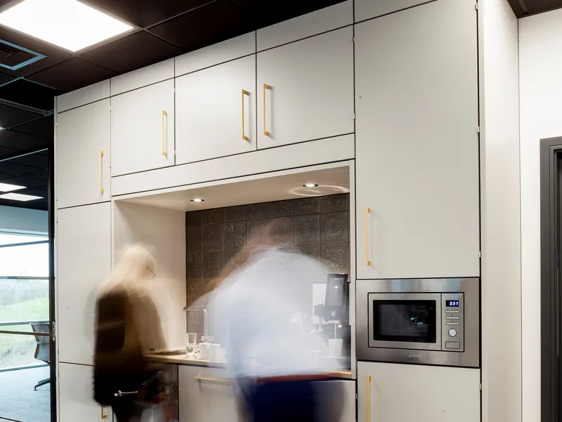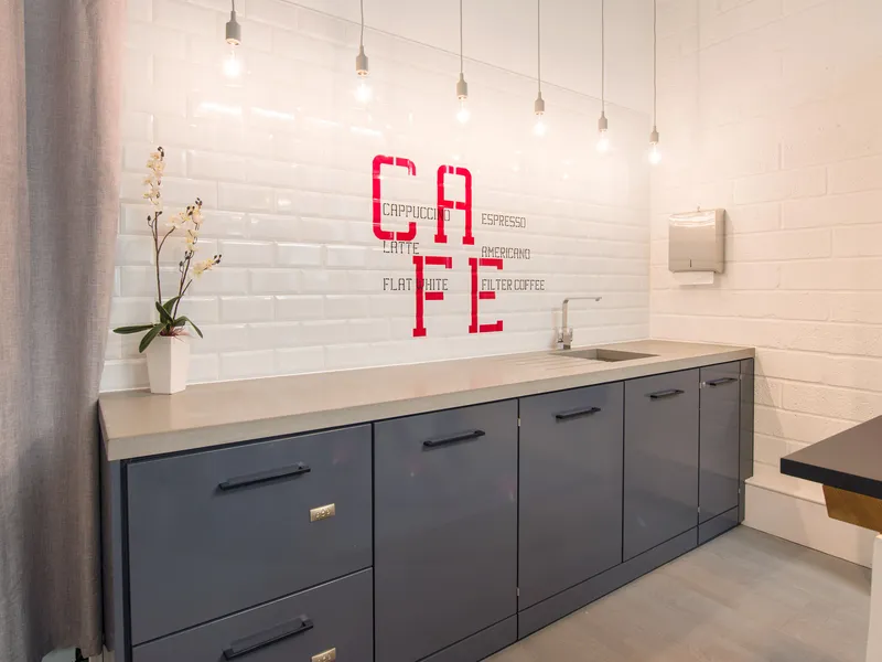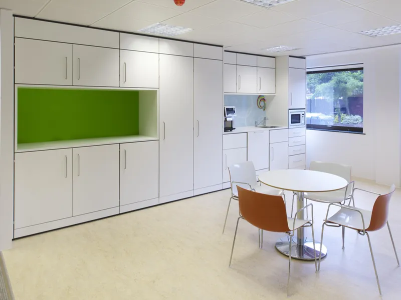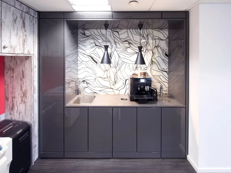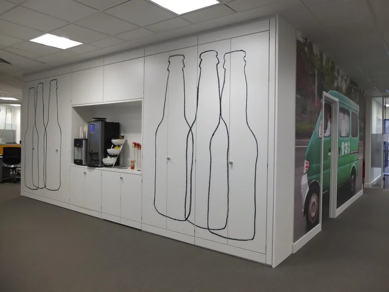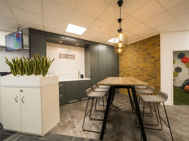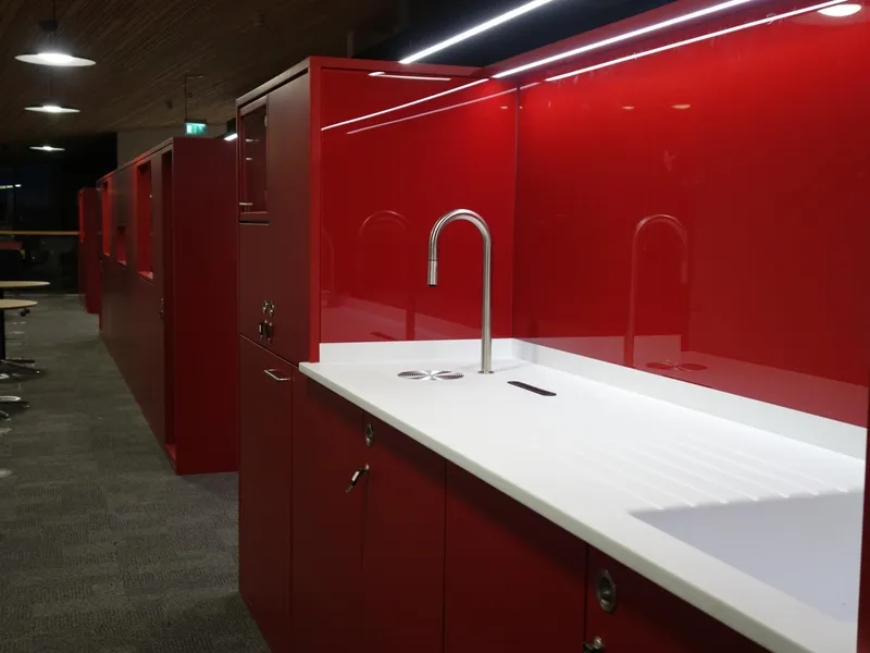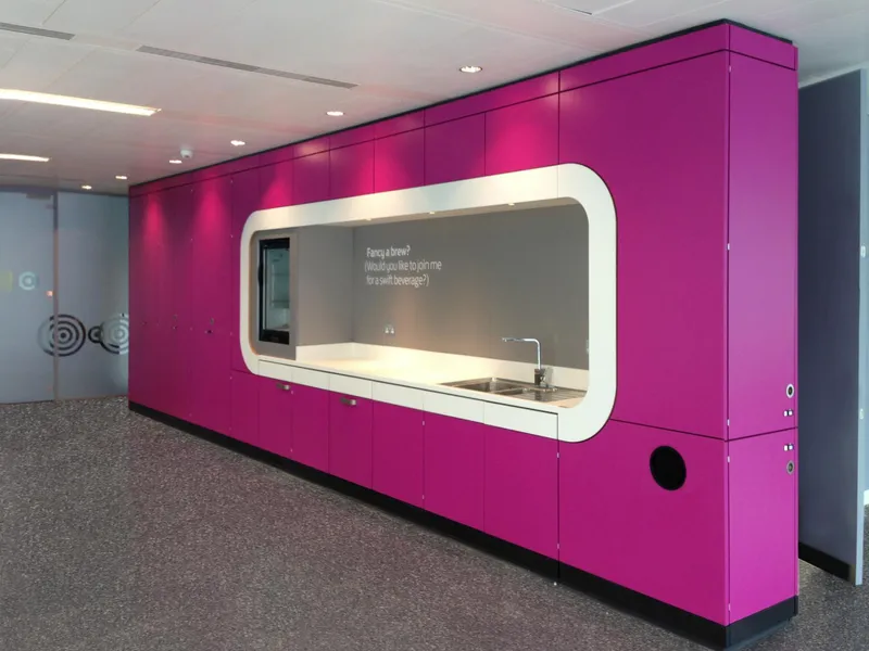 A high-tech refreshment area for one of the world's leading manufacturers of secure storage for tools and equipments and other construction products.