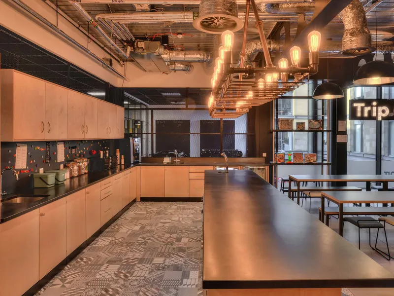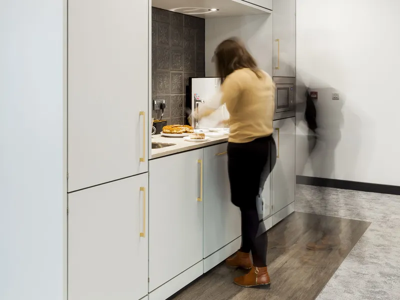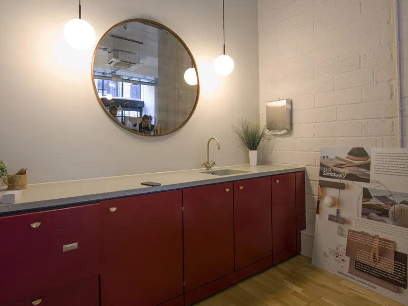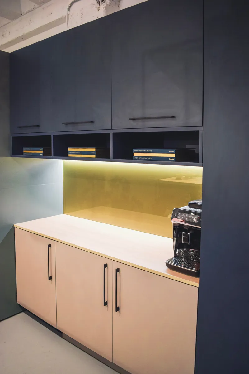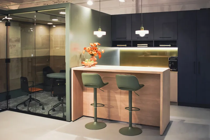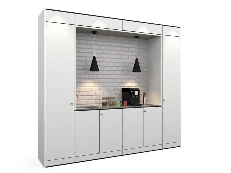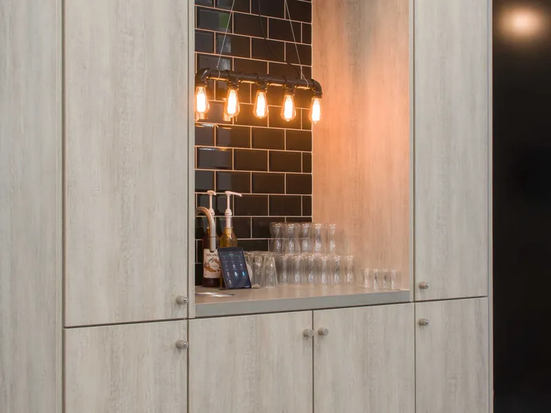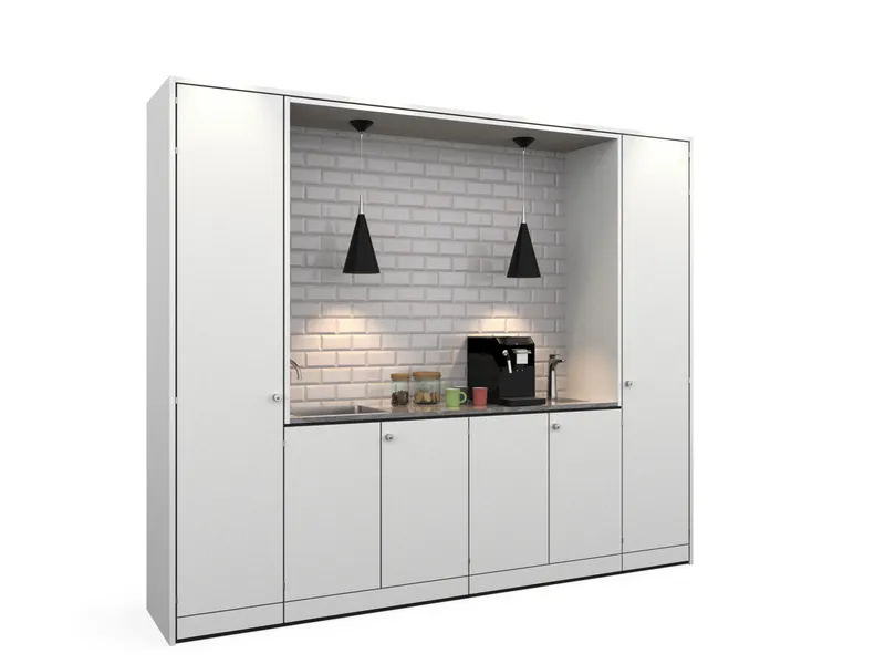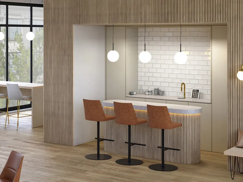 A high-tech refreshment area for one of the world's leading manufacturers of secure storage for tools and equipments and other construction products.