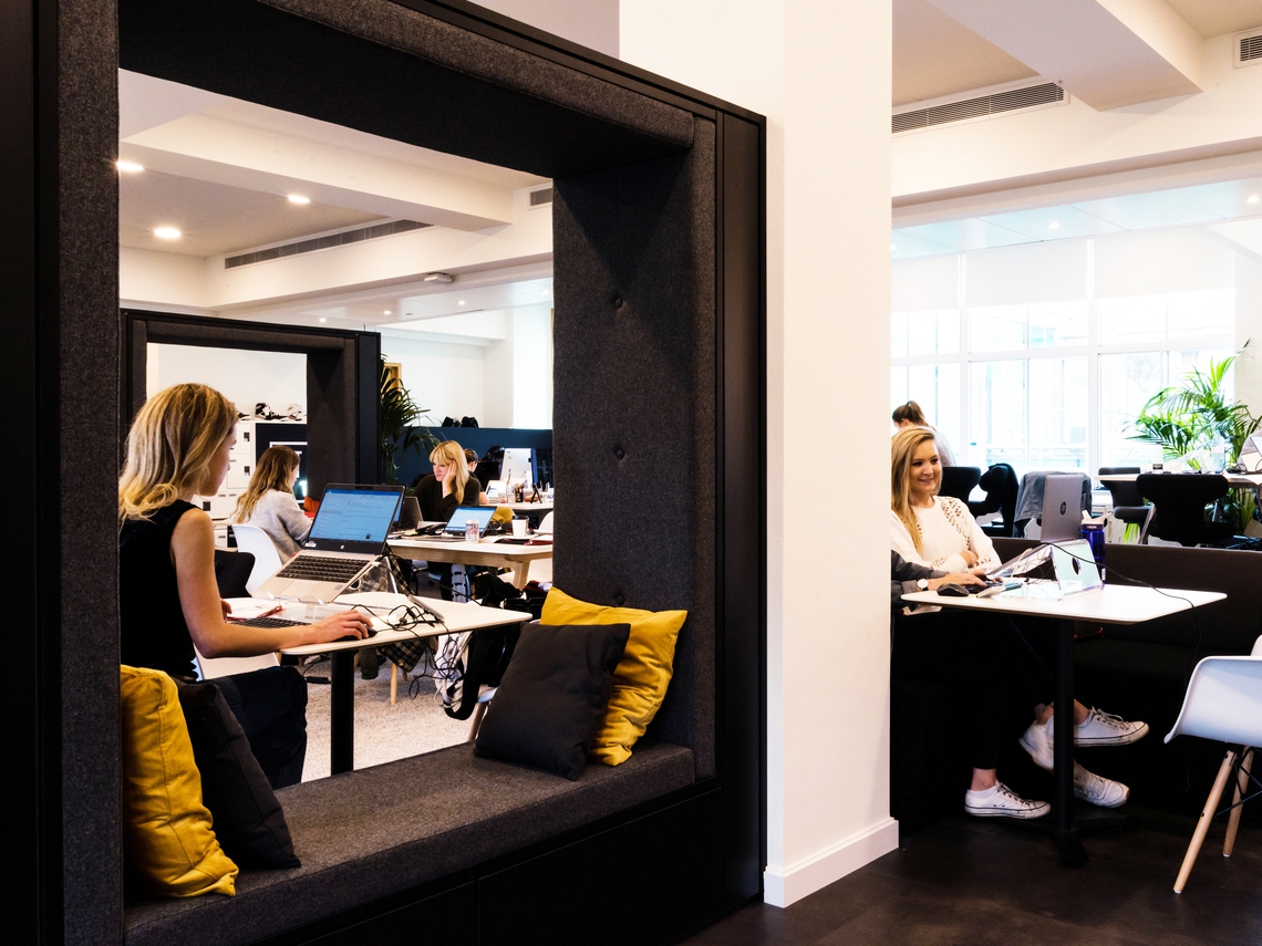 For this project we collaborated with Design & Build specialist Action Workspace to supply a black-clad Snugglestor with dark grey upholstery. M&C Saatchi was founded according to one core principle – brutal simplicity of thought – and we have also long believed in the simplicity and adaptability of good design. This Snugglestor was not recessed into a wall but rather used as a standalone feature, as a zone divider in the open-plan space. Not only can one relax inside of it, the way it’s used here also frames the spaces around it – demonstrating how a simple, modular unit like our Snugglestor can be adapted to all kinds of different needs.