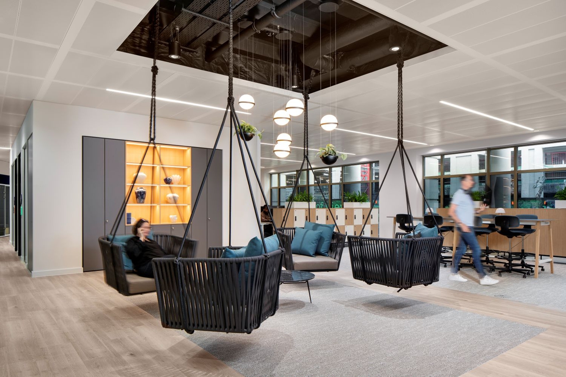 Bold branding and a striking LED theatre put Paysafe’s identity front and centre, while playful touches such as swings add a spark of creativity. Sustainability and inclusivity were integrated throughout, achieving SKA Gold certification and the inclusion of accessibility features reflecting the company’s long-term commitments. Every choice - materials, finishes, and furniture - was made to support a vibrant, functional, and forward-thinking workplace.